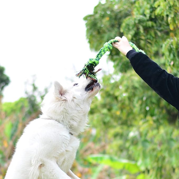 - Large dog rope with handle, 5-Knot Rope Tug is longer and stronger than 3-knot rope tug.will help you make tug of war with your dog easier, keep your dog away from loneliness, can relief your dog’s anxiety and effectively stop chewing furniture and shoes
