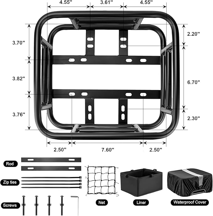 - HEAVY DUTY:Unlike other wire baskets are easy to rusty and broke.Our bike rear basket used thick pipe steel as material,covering with thick smooth powder coating,it's very well made and built to last.