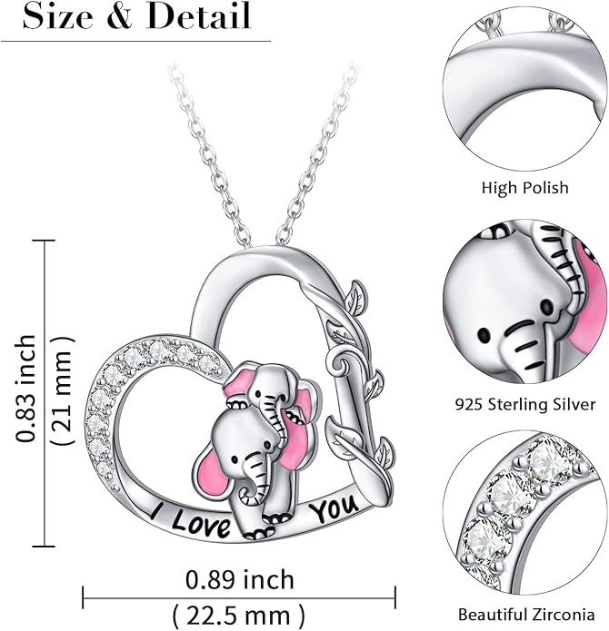 - 🐘Design - This sterling silver elephant necklace is designed by a lovely elephant mother and daughter, representing love, protection, and peace, just like a mother's love for us, it is a meaningful gift for mother or daughter.