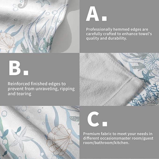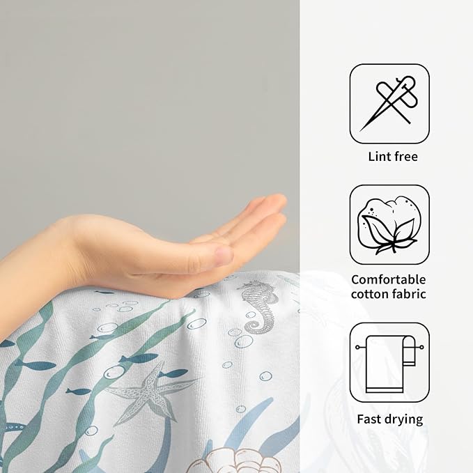 - 【Perfect Gift】This marine life hand towel makes a great addition to any space. It also a perfect gift for your family and friends. Great hostess gifts, housewarming gifts, or birthday gifts!