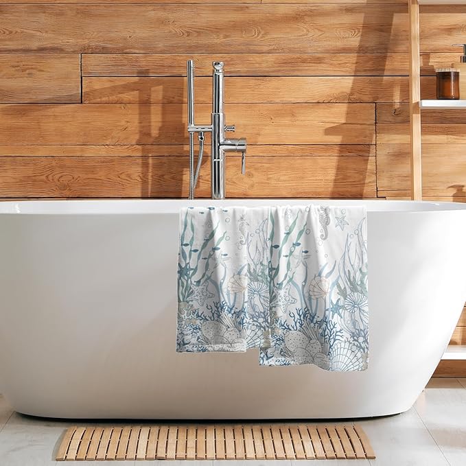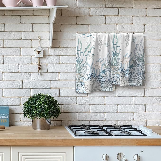 - 【2 Piece Towel Set】The size of the seashell seaweed hand towel is 28 X 14.5 inches. This set includes 2 hand towels. With bright colors and exquisite patterns, it is an excellent decorative towel for the bathroom.