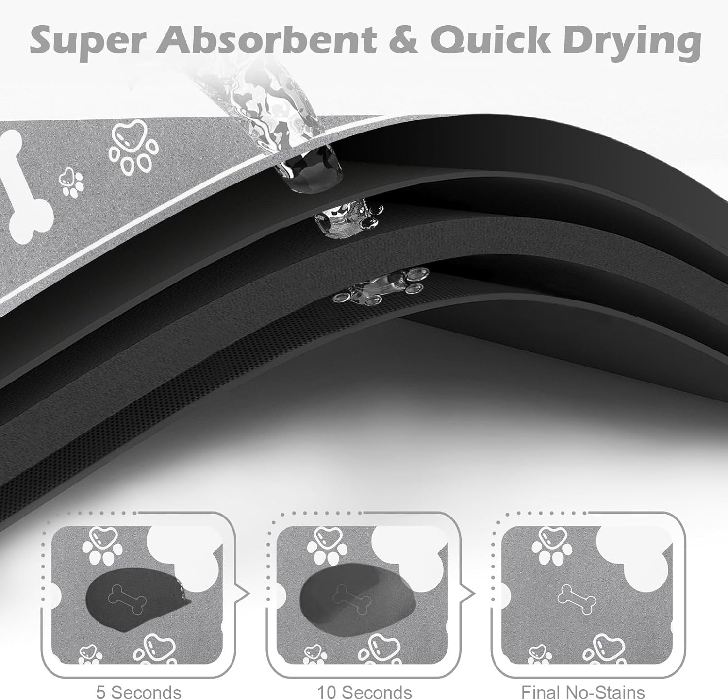 Pet Feeding Mat,Rapid Absorbent Mats for Dog Cat Food, Dog Placemat Water Bowl Mat with Rubber Backing,Messy Drinkers to Protect Floors, Pet Accessories 17"×29" Grey