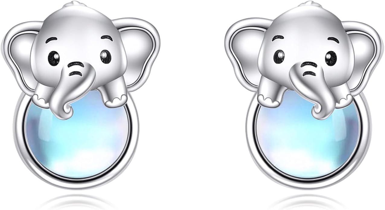 - Elephant Stud Earrings Size: 12.2*9.8mm(LxW). Weight: 3.14g. Cute silver elephant moonstone earrings are suitable for all women and girls everyday wearing.