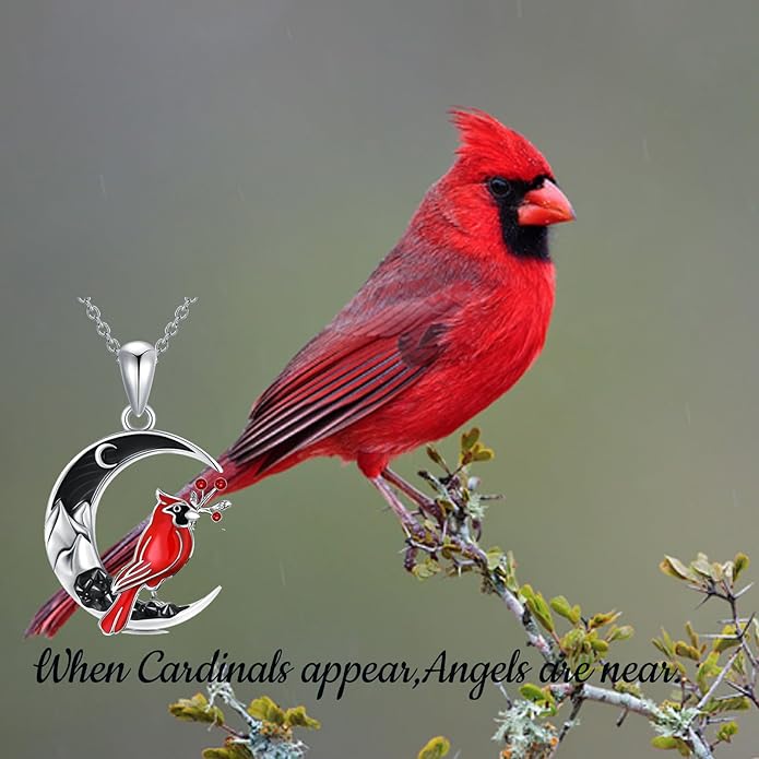 - Red Cardinal Necklace: "When cardinal appears, loved one is near" Take the memories of your best love with you no matter where you go. Cardinal stands on the mountain,which composed of 5A+ Cubic Zirconia It is not only a good Halloween gift, but also a good choice for everyday wear