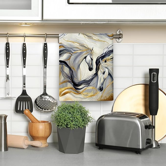 - Cute horse dish towels for kitchen clearance sets are made of high quality cotton polyester, ultra absorbent, soft, reusable washable and durable. It is a great horse kitchen decor or accessories.
