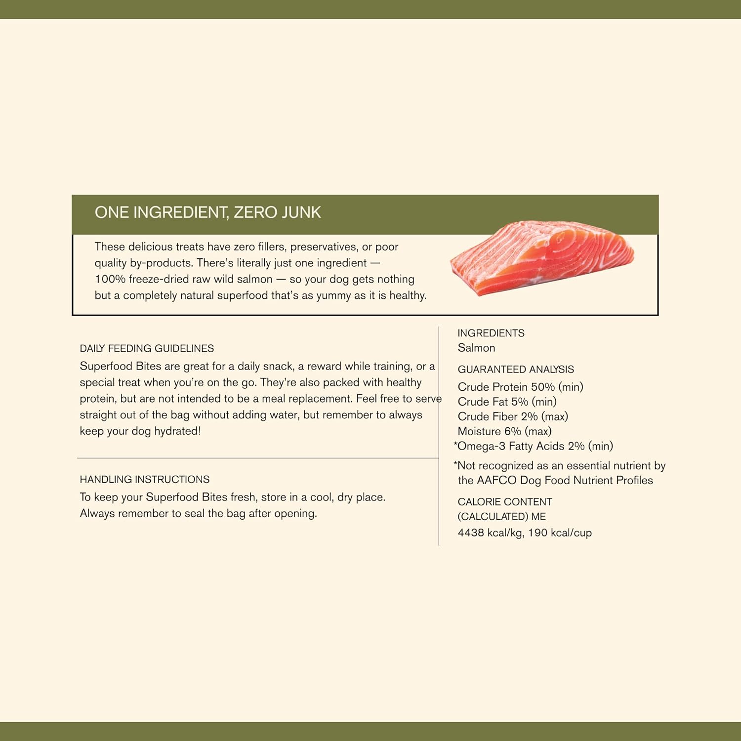 - Superfood Bites are crafted with real, wild-caught salmon for the savory taste your dog deserves.