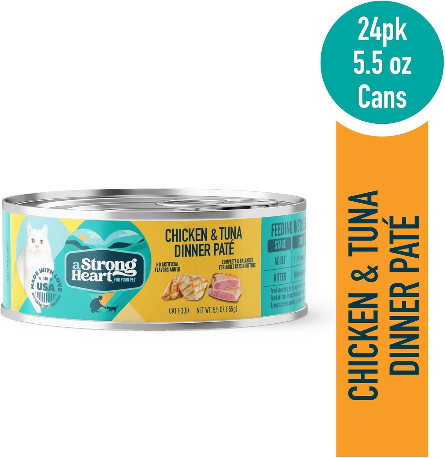 A Strong Heart Canned Wet Cat Food, Chicken & Tuna Dinner Paté - 5.5 oz Cans (Pack of 24), Made in The USA with Real Chicken & Tuna