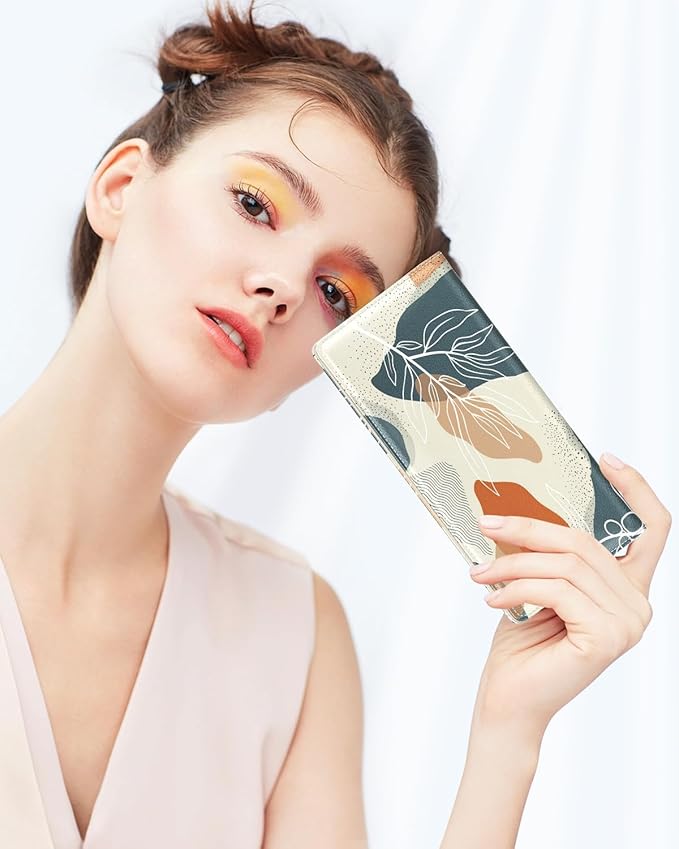 Nipichsha Womens Wallet, RFID Slim Wallets for Women, Thin Ladies Credit Card Holder Purse, Cute Leather Bifold Clutch Billfold with 11 Card Slots & ID Window, Abstract Boho Leaf