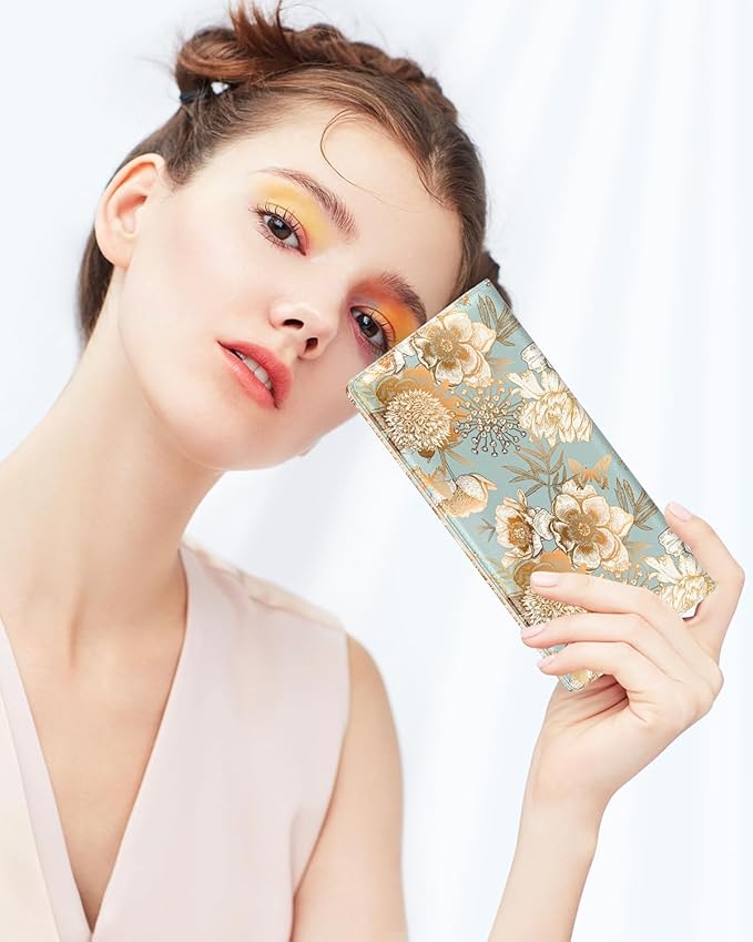Nipichsha Womens Wallet, RFID Slim Wallets for Women, Thin Ladies Credit Card Holder Purse, Cute Leather Bifold Clutch Billfold with 11 Card Slots & ID Window, Blooming Flowers