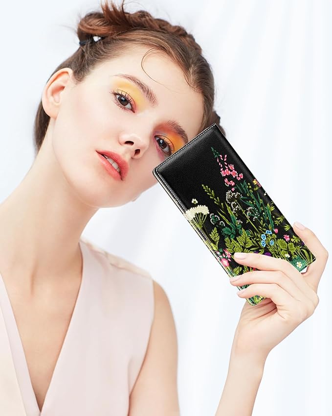 - Slim & Protable Size: This slim wallet for women measures 7.48 x 3.86 inch, and only 0.59 inch thick, lightweight and does not take space, it is extremely convenient to be carried around in your pocket or bag, perfect for daily use, shopping amd travel