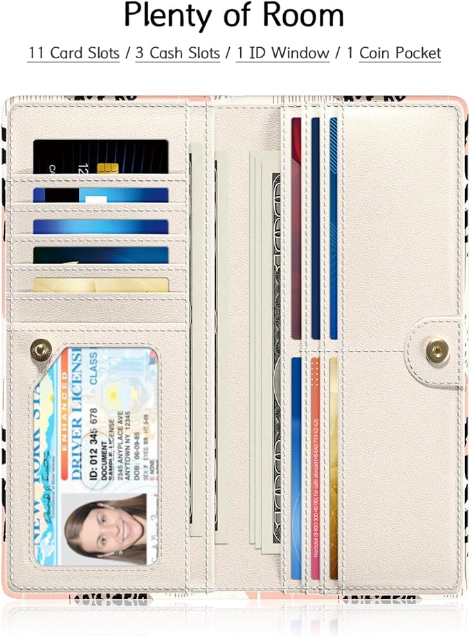 - Large Capacity: Ladies wallet designed with 11 card slots, 1 visual ID window, 1 zipper coin pocket, 3 long cash & receipts compartment, you can put 1 - 2 cards into each card slot. Plenty of room, enough to satisfy all your needs for an everyday wallet