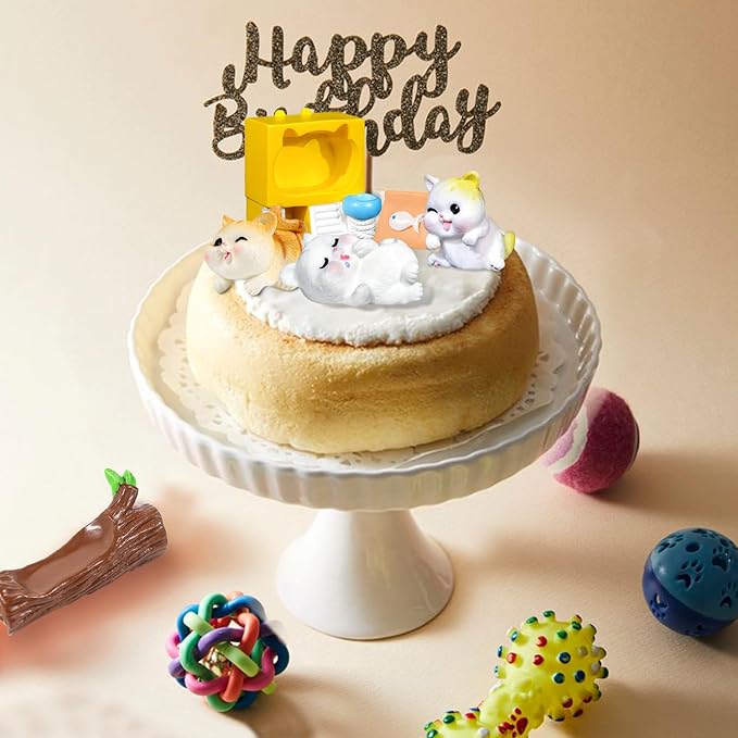 10Pack Mini Cat Figures Playset, Miniature Cute Cartoon Kitty Characters Fairy Garden Toys for Kids Birthday Baby Shower Dollhouse Easter Cake Decorations