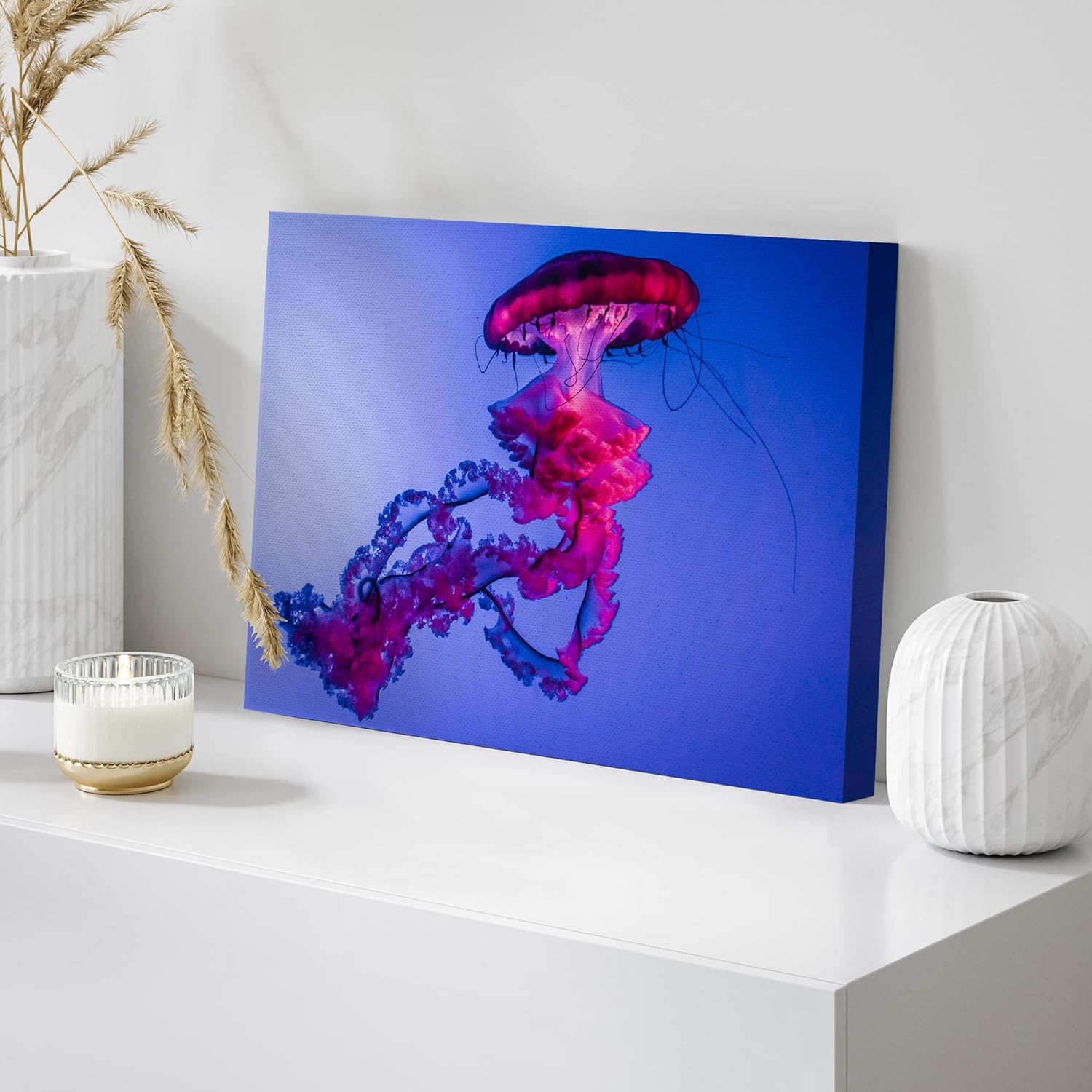 wall26 Canvas Print Wall Art Vibrant Neon Hot Pink Underwater Jellyfish Nature Animals Photography Realism Rustic Scenic Landscape Wilderness Earth for Living Room, Bedroom, Office - 12"x18"