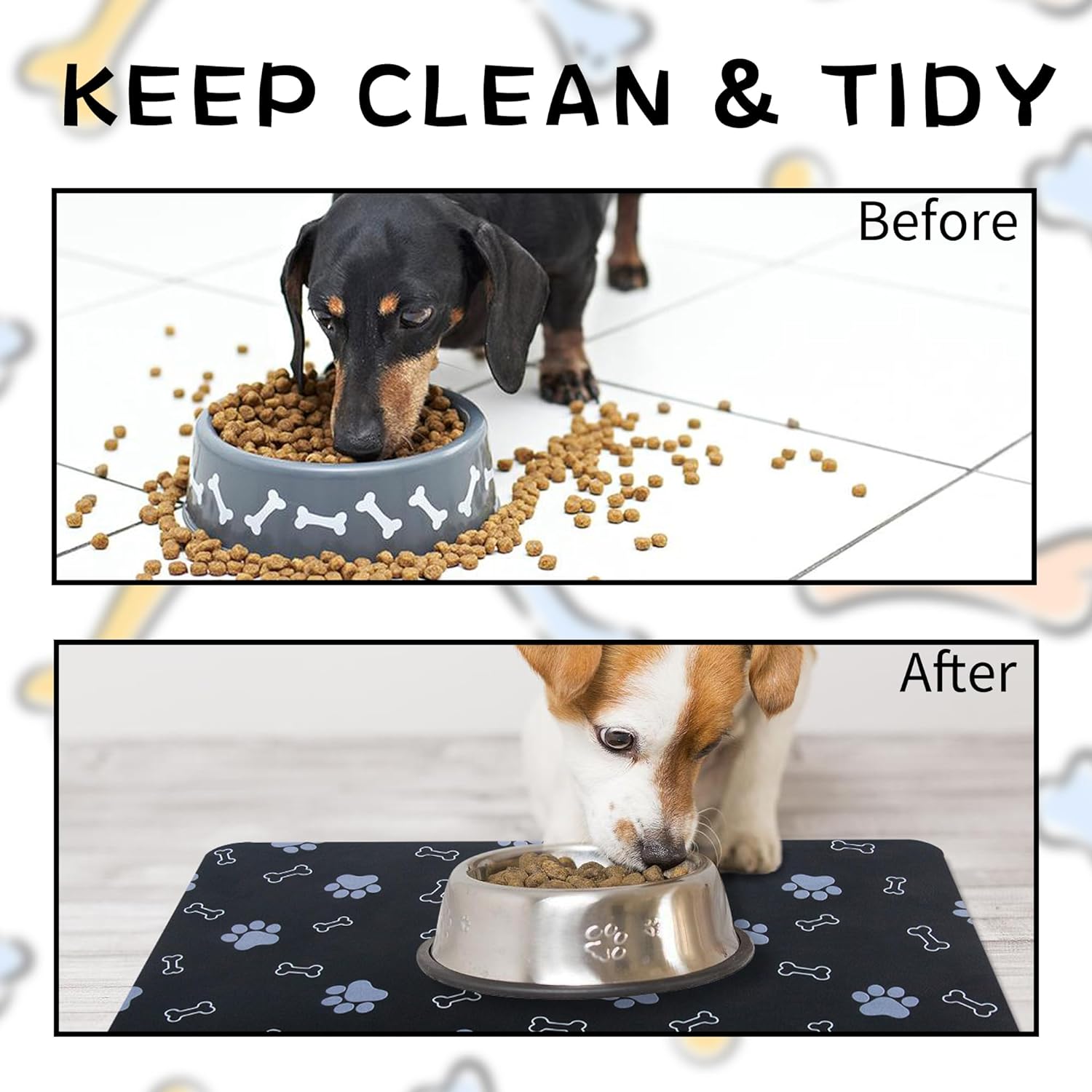 - 【Super Absorbing & Quick Drying】Our pet food mat is specially designed with a super absorbent material that quickly absorbs any spilled water, the innovative quick-drying technology used in our pet food mat ensures that it dries up fast, helping to keep your floor clean.