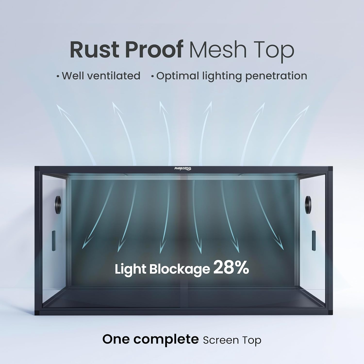 - 【Worry Less】NO GAPS FOR ESCAPING with fully closed structure. Rigid tempered glass doors with tiny door gaps. Rust proof top screen ventilation allows better air circulation and optimal lighting penetration.