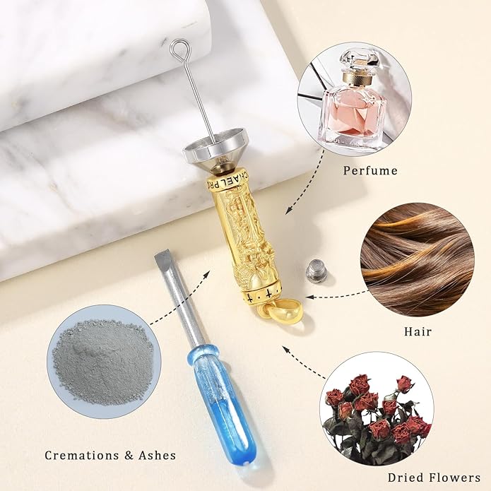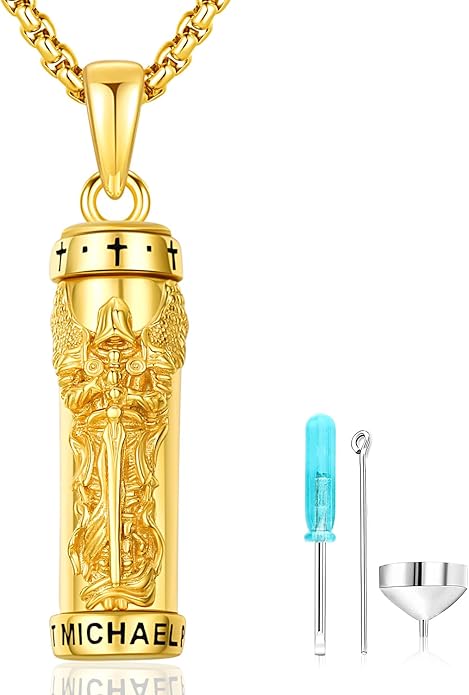 - Package includes: 1 x St Michael urn pendant; 1 x adjustable chain necklace; A set of funnel tools;1 x gift box.