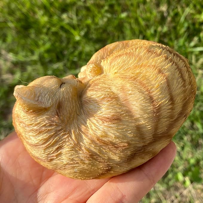 - ADORABLE DESIGN: This mini resin cat statue features an expertly sculpted sleeping kitten curled up into a ball, looking oh so cute and cuddly.
