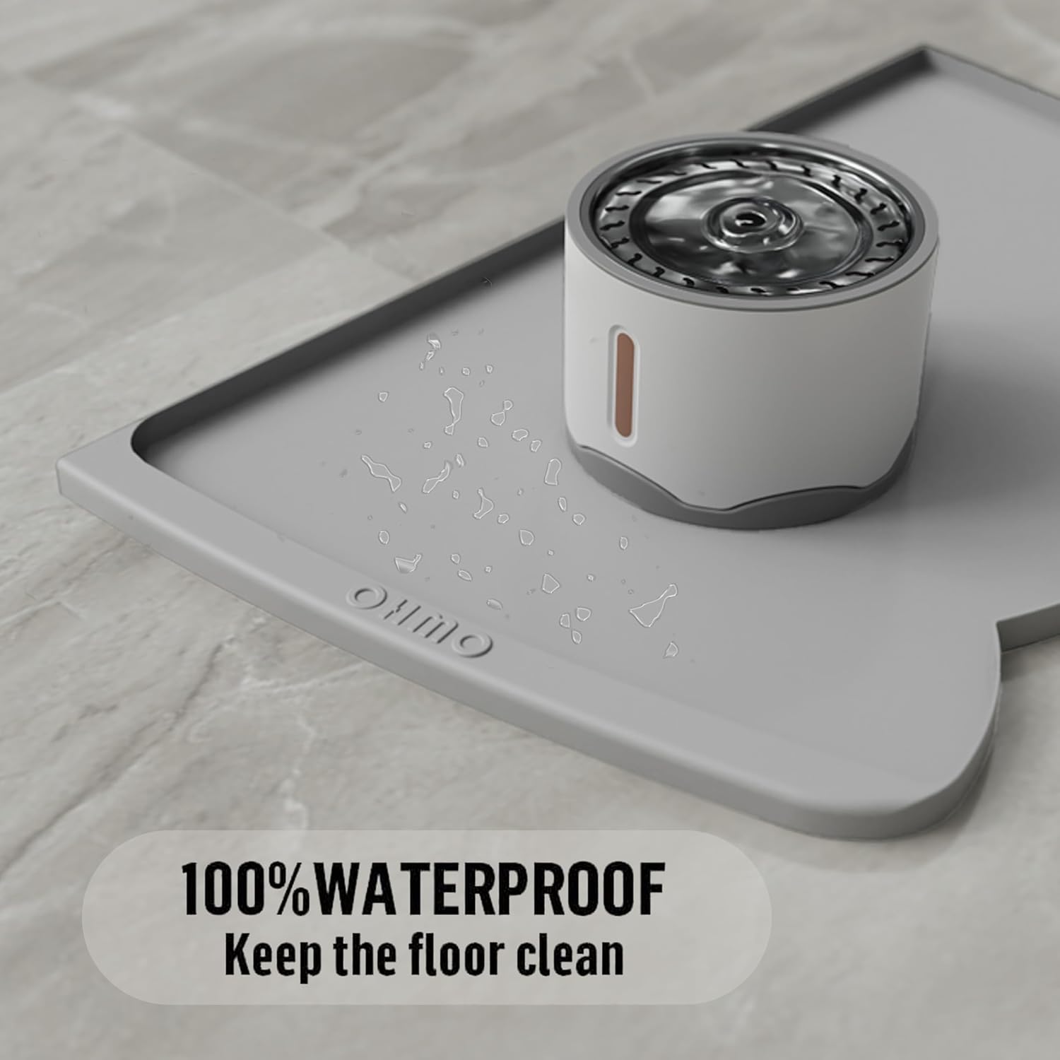 OHMO Dog Food Mat(Ash, 24 * 15'') w/Residue Collection Pocket Silicone Pet Feeding Mat for Floor High Edges Anti Spills Waterproof Cat Water Bowl Tray, Easy Clean Placemat
