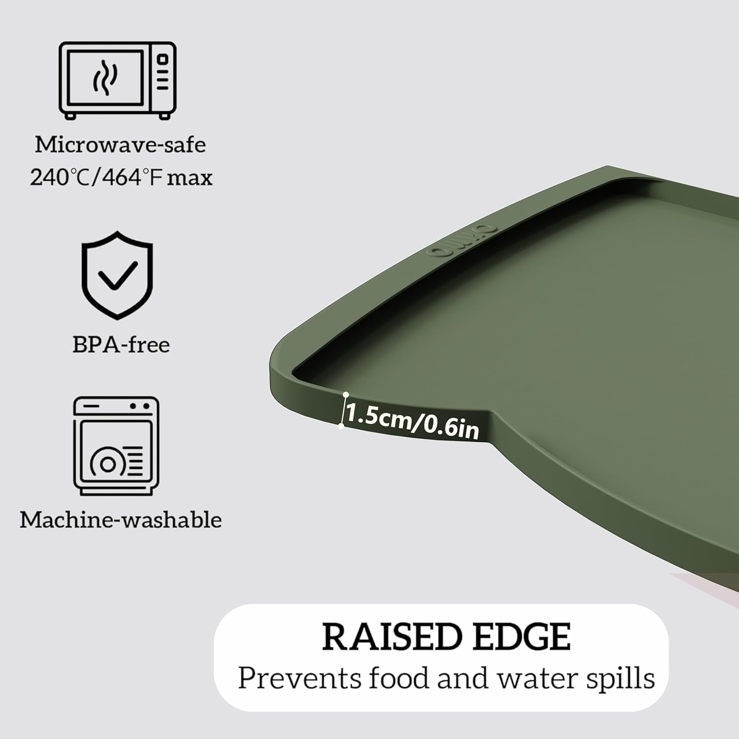 OHMO Dog Food Mat(Camo Green, 24 * 15'') w/Residue Collection Pocket Silicone Pet Feeding Mat for Floor High Edges Anti Spills Waterproof Cat Water Bowl Tray, Easy Clean Placemat
