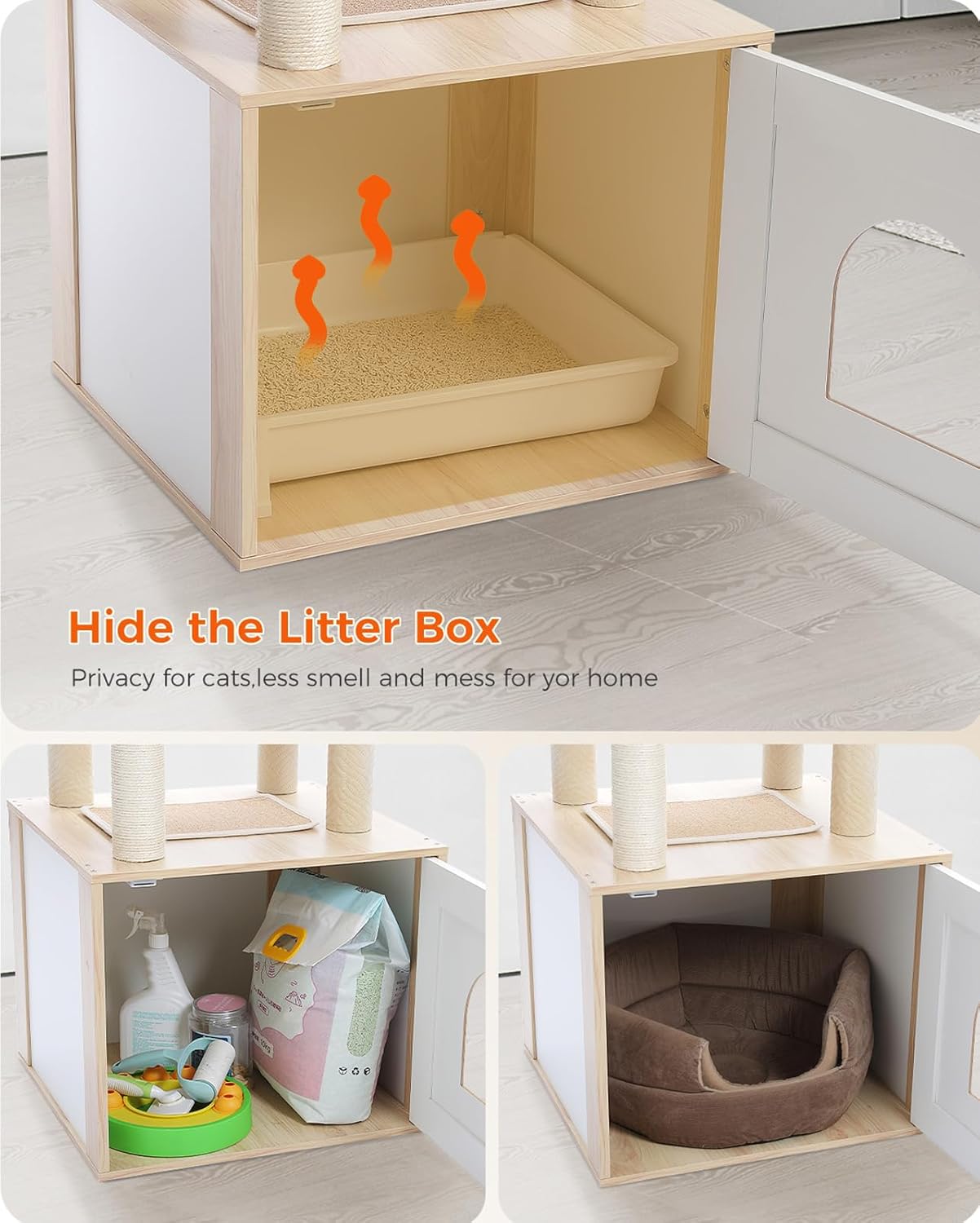 - Space-Saving Litter Box Enclosure Cabinet: Merge functionality and style with our innovative litter box enclosed cabinet.