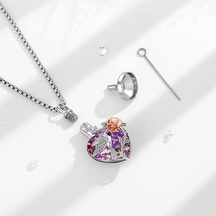 - NECKLACE MATERIAL: The urn pendant for women is made of fine 925 sterling silver, set with purple Austrian crystals, the pendant looks very sparkling and charming. These safe materials have low sensitivity and oxidation resistance.