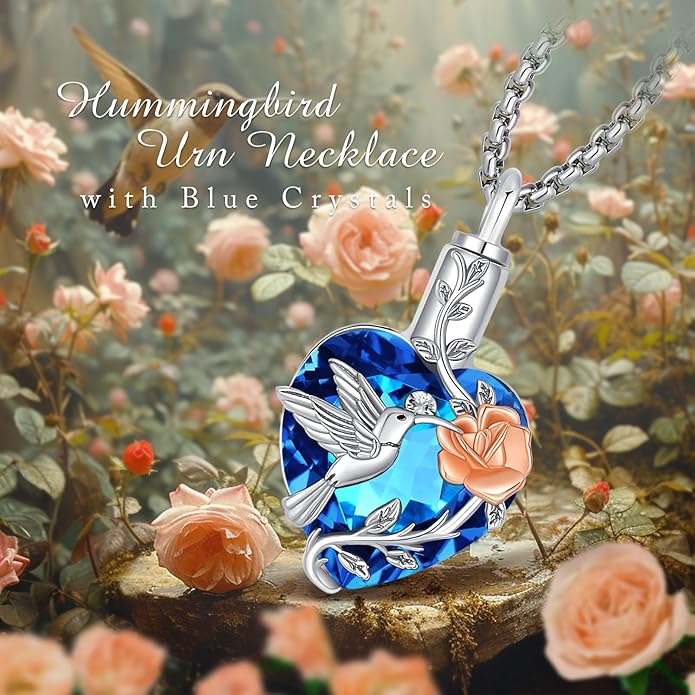 - DESIGN CONCEPT: The hummingbird is a symbol of beauty and freedom, and the life cycle of the hummingbird is closely linked to the opening and withering cycle of the flower, which is also related to the cycle of life. Combining the hummingbird pattern with the urn pendant, it represents the hope for the peace and release of the soul of the deceased relative, the belief in the eternal cycle of the soul of the deceased relative, and the remembrance of the good times in the life of the deceased.