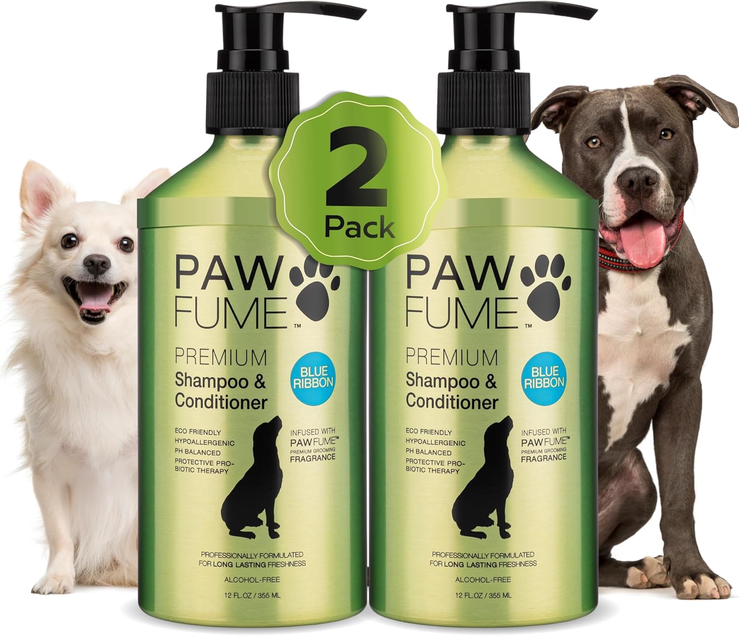 PAWFUME Dog Shampoo and Conditioner, Blue Ribbon, 2-Pack – Nourish & Detangle for a Silky Soft Coat – Probiotic, Deep-Cleaning, pH-Balanced Formula – Puppy Shampoo and Conditioner for All Breeds