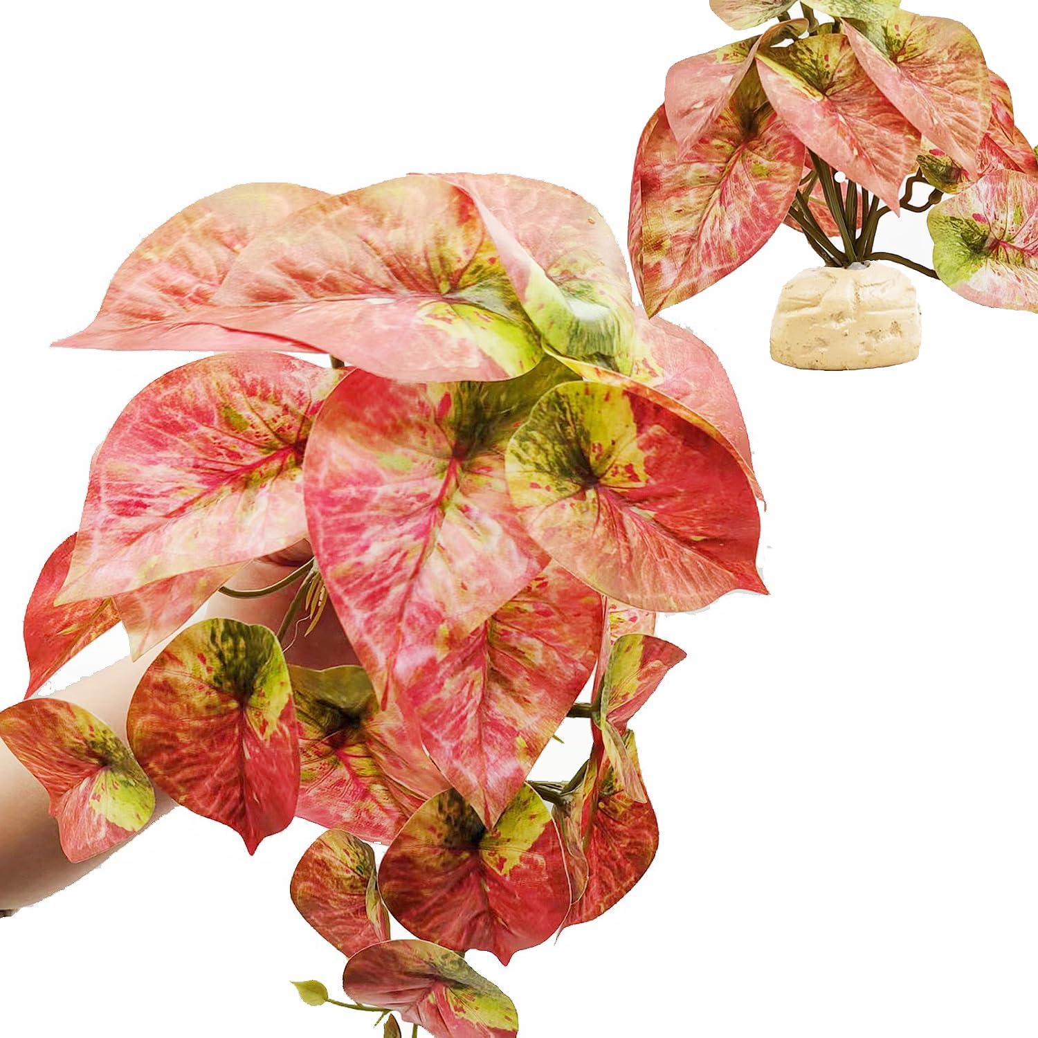 Reptile Plants for Terrarium Decor,Amphibian Habitat Decor, Bearded Dragon Tank Accessories,Artificial Plants for Gecko Chameleon Snake Tortoise with Base (Arrowhead)