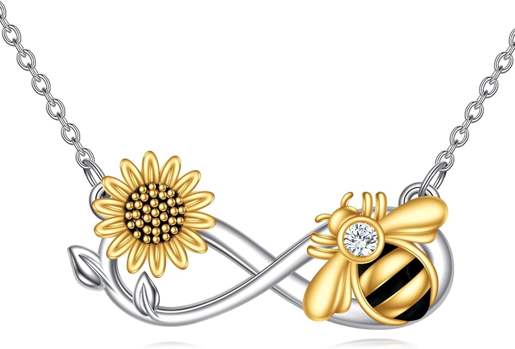- 💖Unique Design💖 Bee necklace combine sunflower and infinity shape! the Honey Bee symbol of industrious,rose stmbol of beautiful,infinity symbol of love, and praise her beauty like a sunflower .