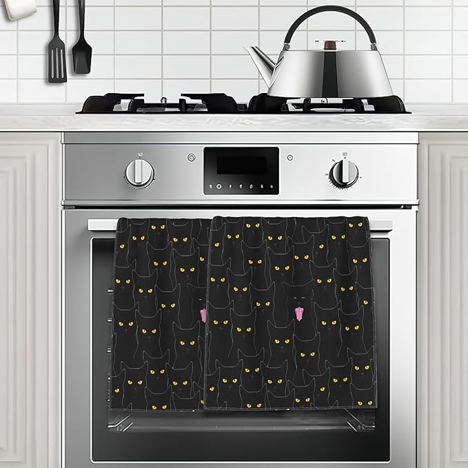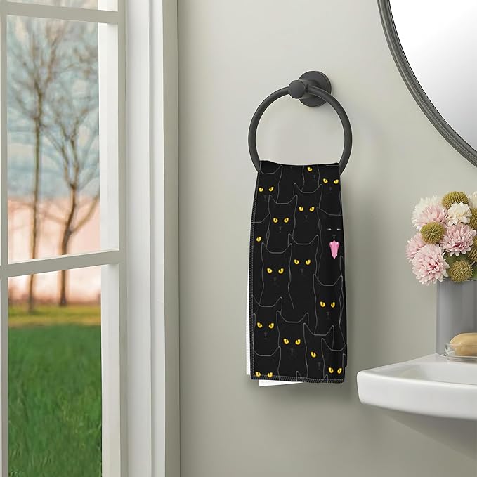 Funny Cat Hand Towels Set of 2,Black Cats Bath Hand Towels for Bathroom Decorative Soft Absorbent Dish Towels for Kitchen Bathroom Gym Hotel Spa Sport 16x24 Inches