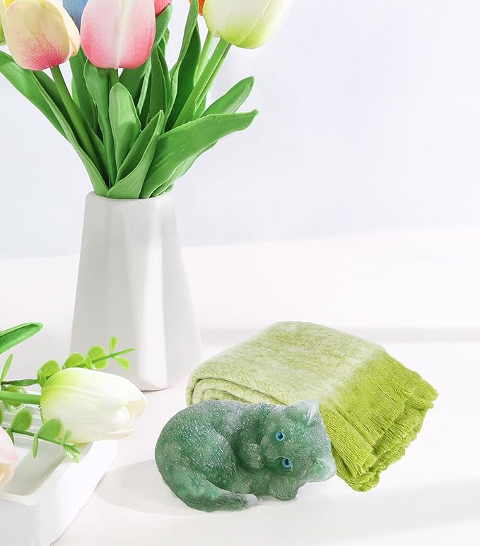 DUQGUHO Green Aventurine Cat Decor - Crystal Gifts for Lovers, Cute Resin Cat Statue Figurines, 1PC