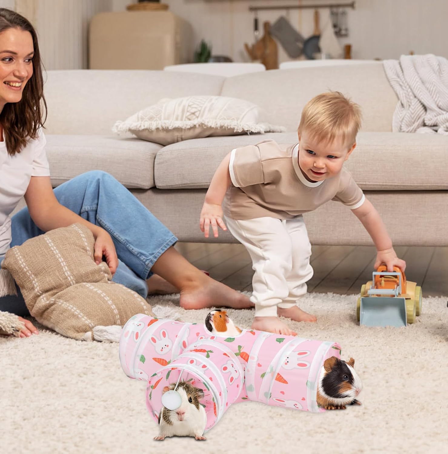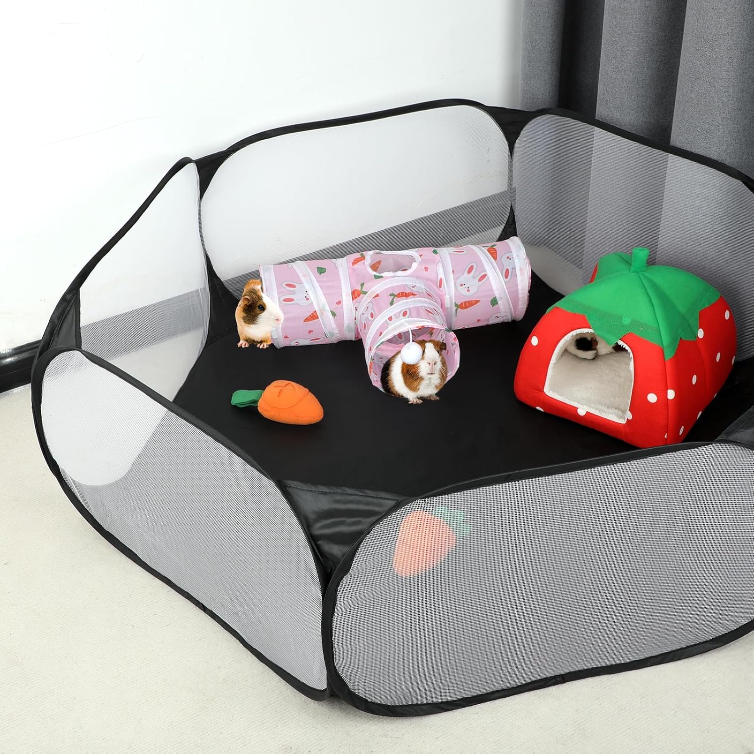 - BEST LITTLE TUNNEL/TOY TO PLAY: Our small animal tunnel with 3 spacious tunnels, peephole & beall toy, this popular guinea pig toy gives your rat more ways to have fun. Provides hours of exercise & self-amusement. small animal tunnel to provide your pet with more so much fun.Great for guinea pigs, chinchillas, ferrets, hedgehogs, mice, hamsters and other small animals.