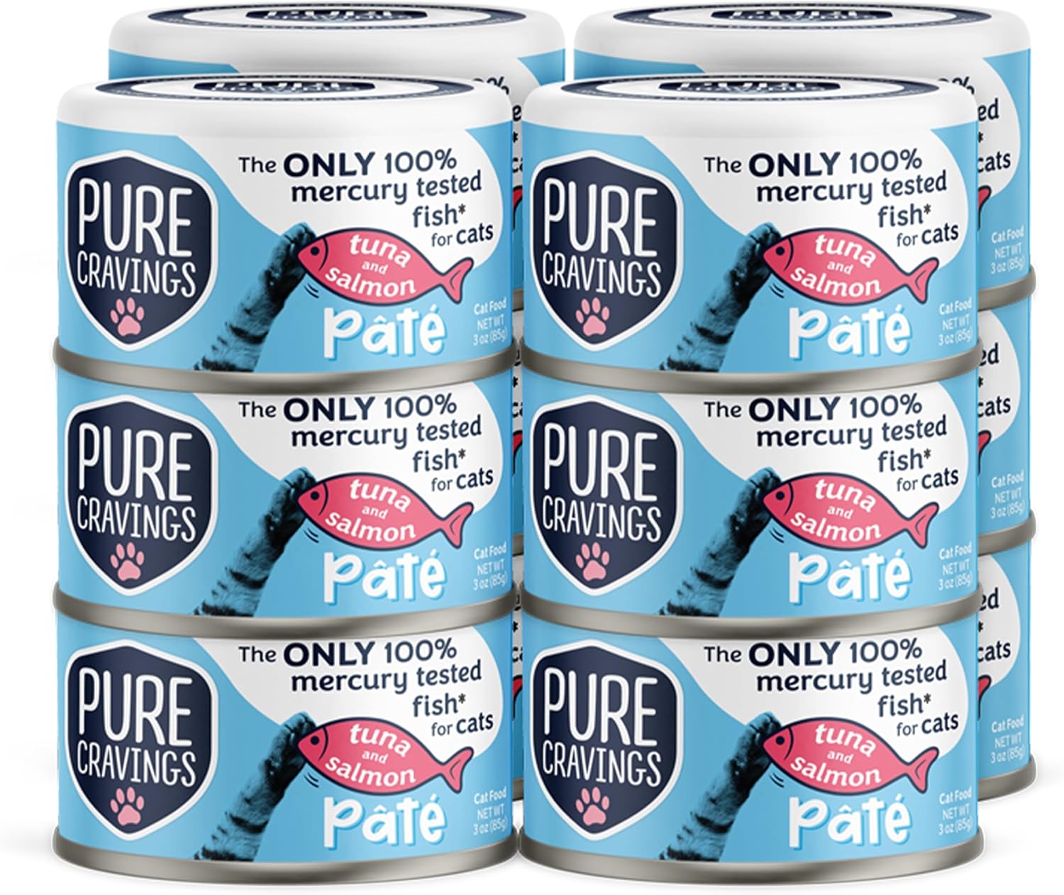 Tuna and Salmon Pate, Canned Wet Cat Food, 100% Mercury-Tested, Moist Can Fish, Grain-Free Protein, Non-GMO, 12 Pack