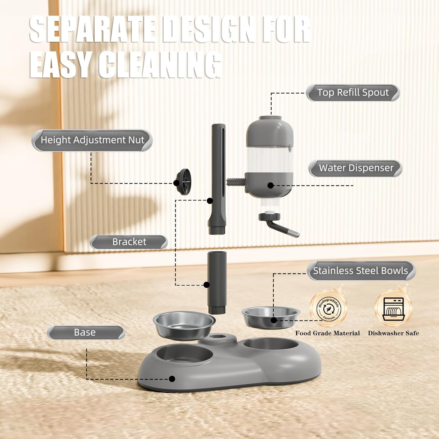 - 【360° Rotating Leakproof Nozzle】This durable, pet-safe water dispenser features a 360° rotating spout, allowing you to perfectly position it over your dog’s wet food dish to catch any drips and keep your floors clean. The easy-to-use roller-ball design suits puppies and small sized dogs, and the simple disassembly makes cleaning a breeze, ensuring your dog always has access to fresh water.