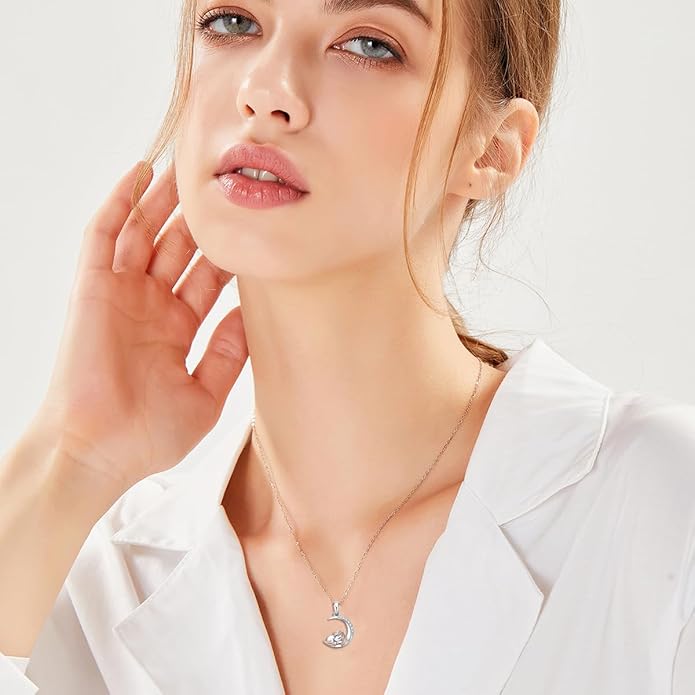 Diamond Black Cat/Red Panda/Sloth/Deer/Unicorn Necklace for Women 925 Sterling Silver Sleeping Animal and Moon Pendant with Lab Grown Diamonds Jewelry Gifts