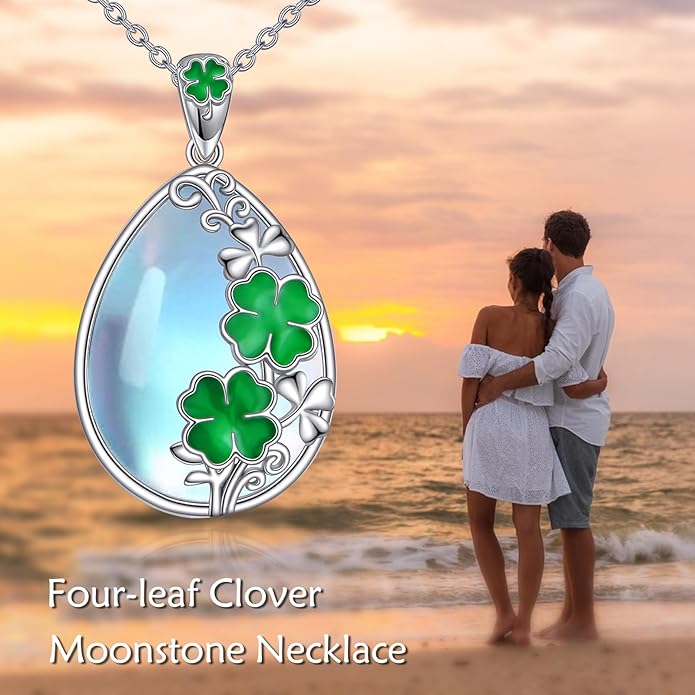 - △ Four Leaf Clover Moonstone Necklace- The first leaf represents hope, the second leaf indicates confidence, the third leaf is love, and the fourth leaf is a symbol of luck. How romantic to give the lucky necklace to the person you are interested in