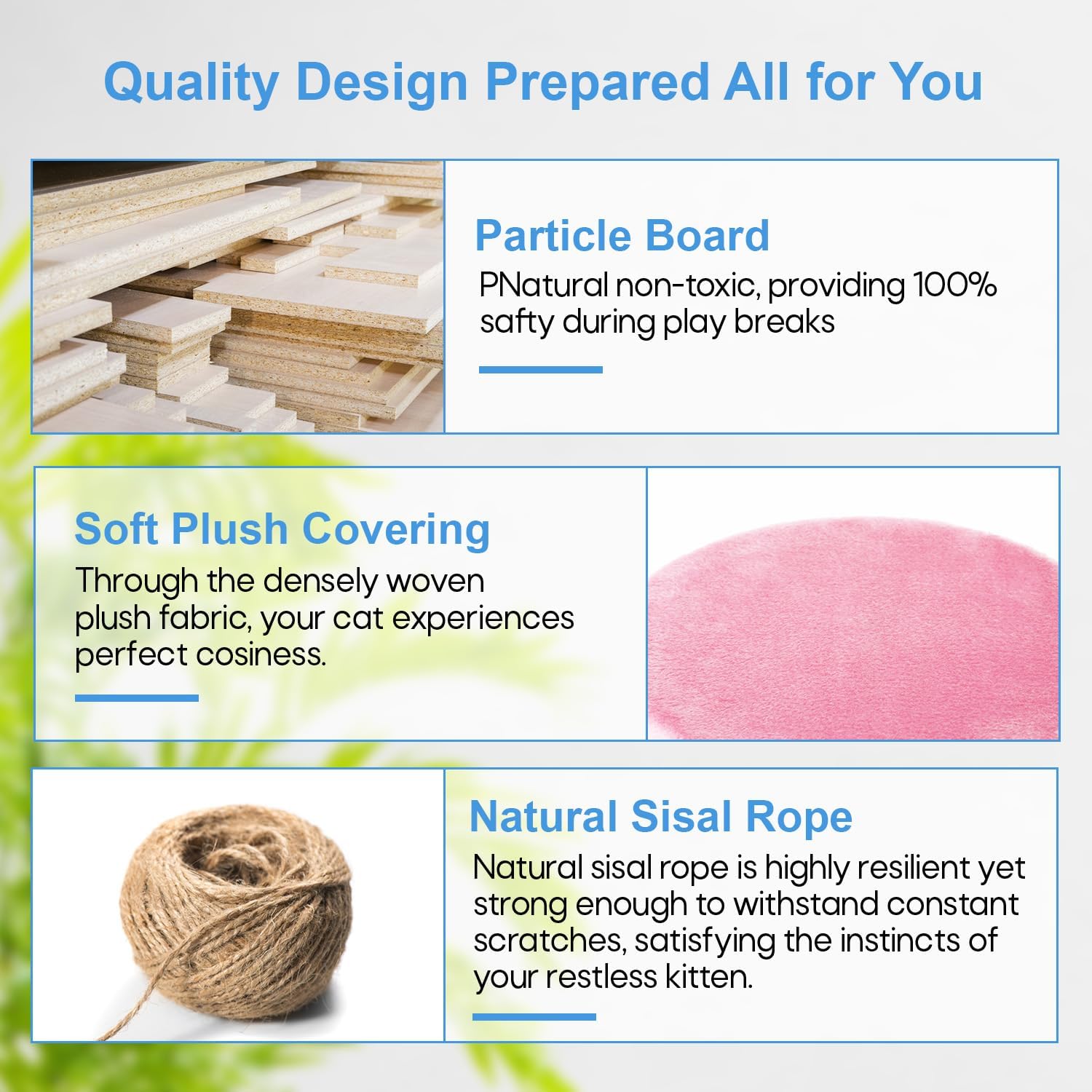 - Material : Particleboard, Plush, Sisal