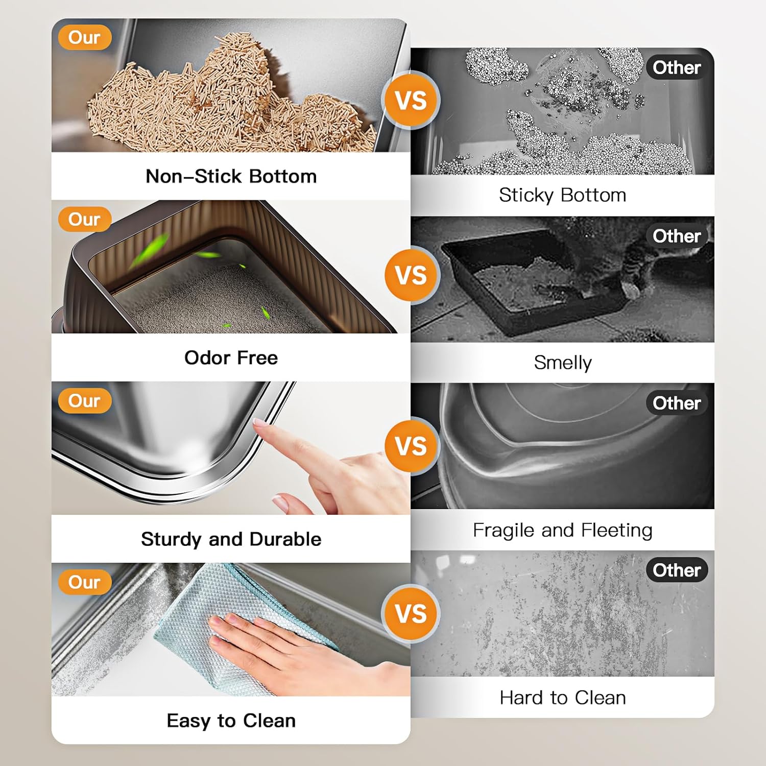 - [Outstanding Quality]: The strong and durable stainless steel litter box xl high sides is not only used as a cat toilet, it can also be used as a feeding tray for almost any animal, a reptile dipping bowl, and more. Giving it a lifespan of up to 5 years, so investing in this stainless steel with high sides litter box will be the best choice you can make! If you have any dissatisfaction with the product, you can contact us at any time. We have professional after-sales customer service for you