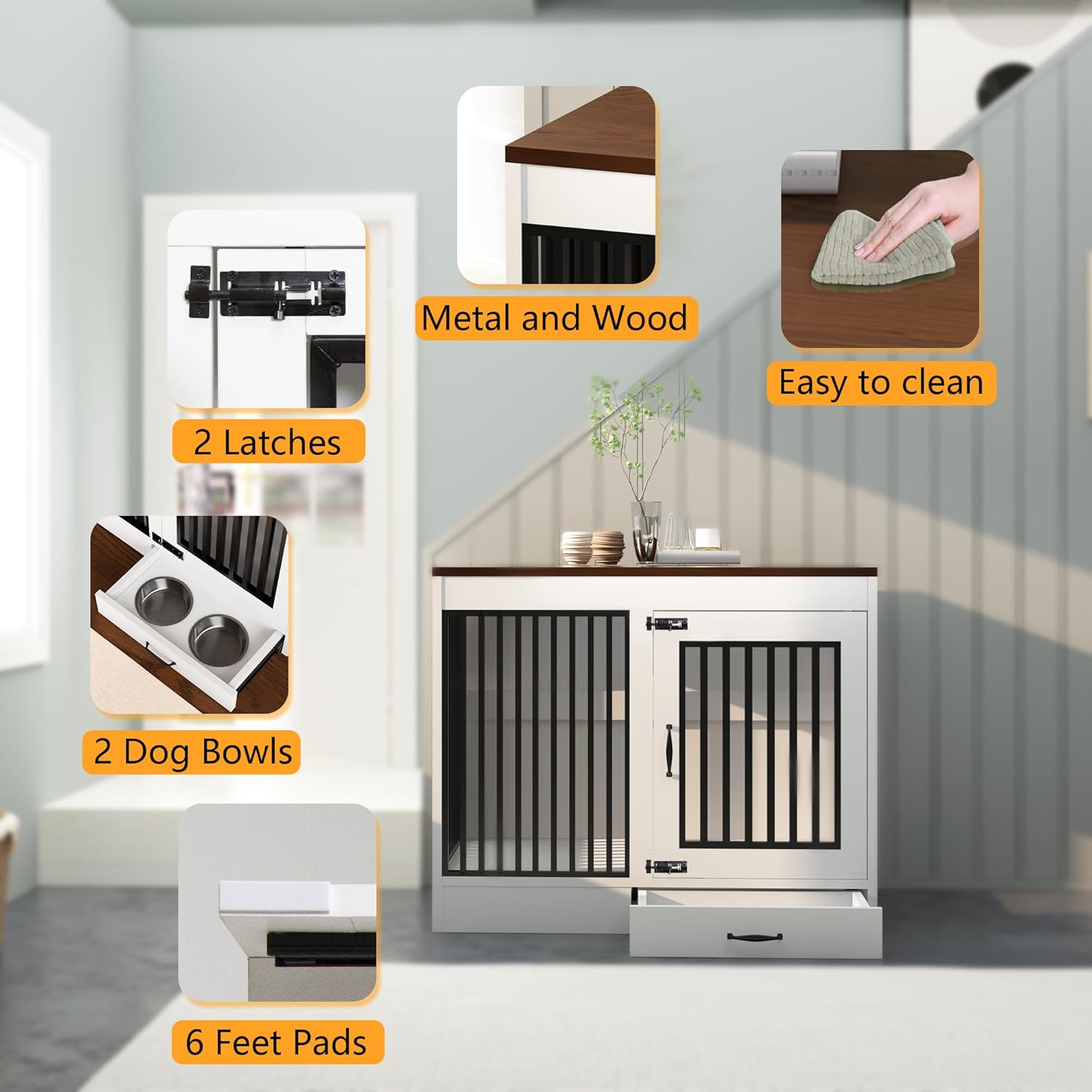 - Super Durable: Dog Crate of Modern Design is made of Wood and Iron. It's Corrosion-Resistant, Sturdier and More Durable than Others, offering a Lasting Safe Space for your Pet Friend.