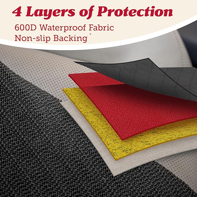 - 100% Waterproof and Durable: Our Heavy-Duty 600D fabric was designed to hold up against water, mud, scratches, and scuffs. Plus, the side flaps contain any liquids, accidents, or mess from car sickness.