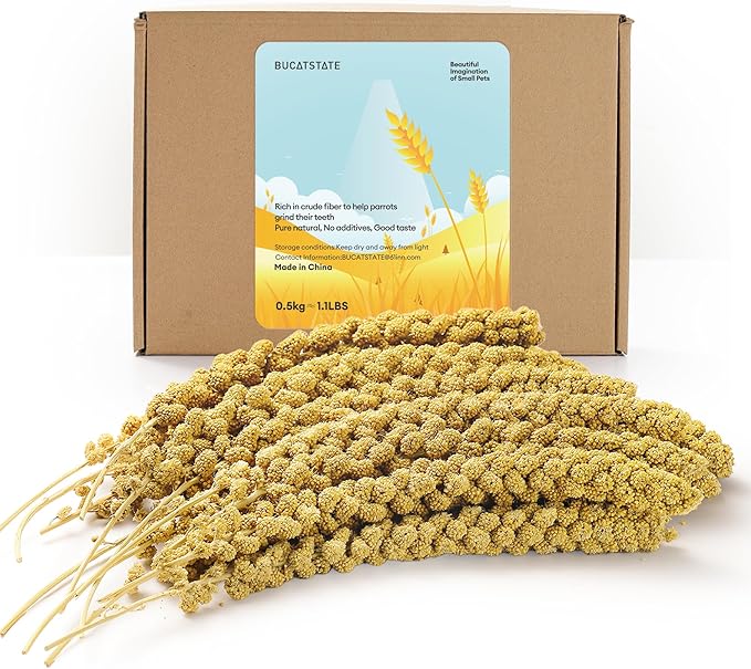 - 【Loved by Birds and Small Pets】Our millet sprays aren't just for birds—they’re a hit with small pets too! Ideal for parakeets, parrots, lovebirds, cockatiels, canaries, budgies, finches, hamsters, chinchillas, and more. Treat your feathered and furry friends to the best with BUCATSTATE’s premium supplies.