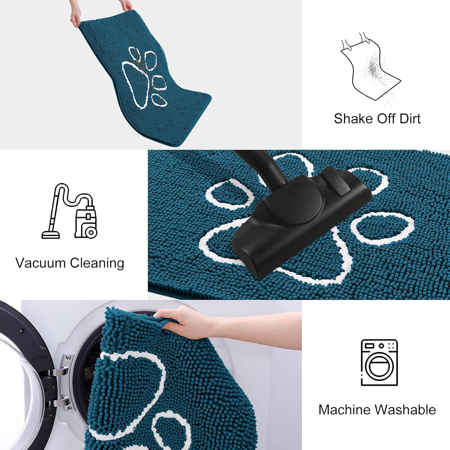 Smiry Dog Door Mat for Muddy Paws, Absorbent Dirt Trapper Non Slip Quick Dry Washable Chenille Mat for Mud Dogs, Entry Rug for Indoor and Outdoor (59x24 Inches, Atlantic Blue)