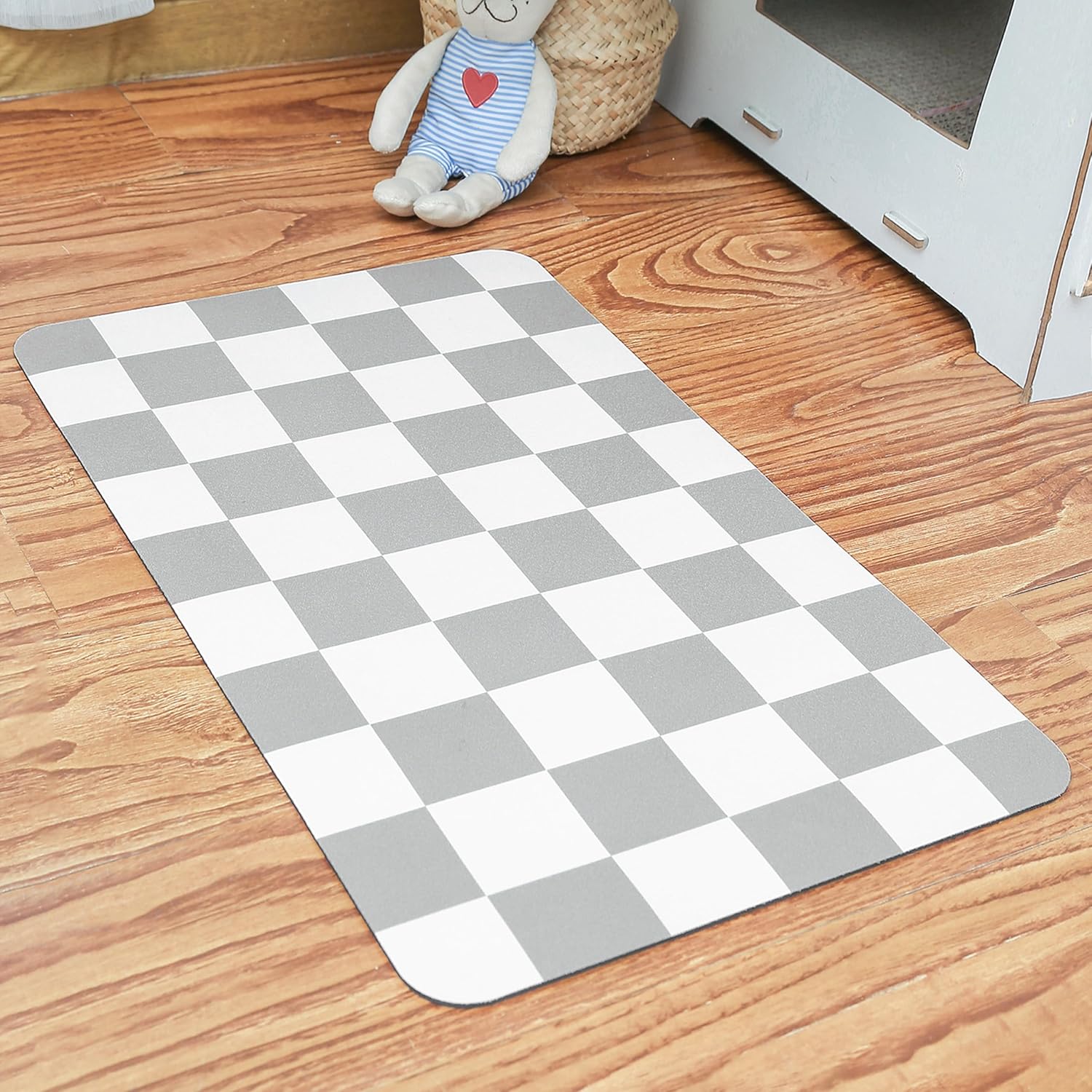 Ralxion Checkered Dog Feeding Mat, Absorbent Mats for Dog Food and Water Bowl, Dispenser, Retro Modern Aesthetic Preppy Grey Checkerboard Pet Placemat for Dogs, Cats, Puppy Accessories, 12" X19”