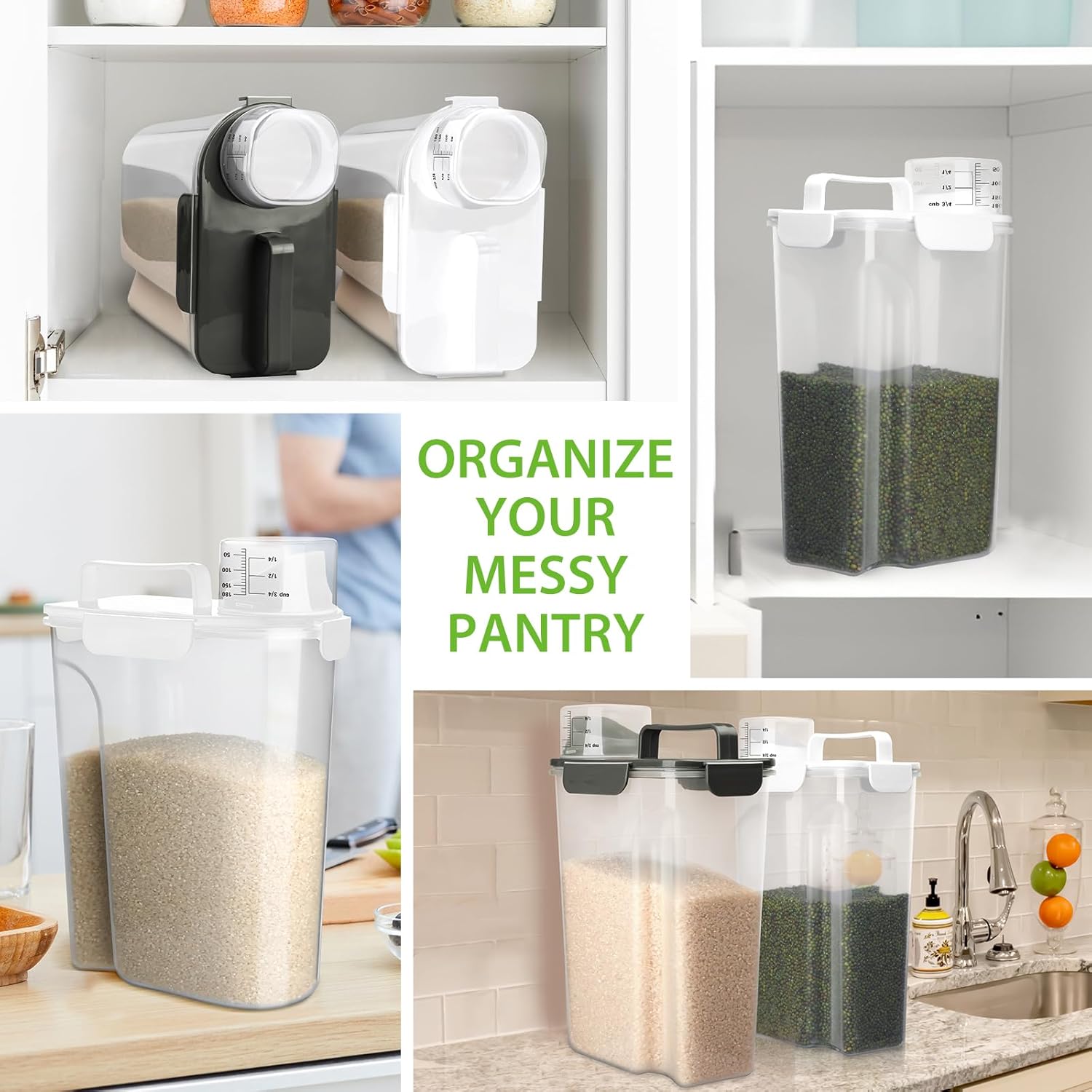- CLEAR VISIBILITY&ORGANIZE BETTER- Clear container lets you identify contents at a glance. The rice container storage will keep your kitchen pantry neat and organized. And portable handle, easy to move and go out