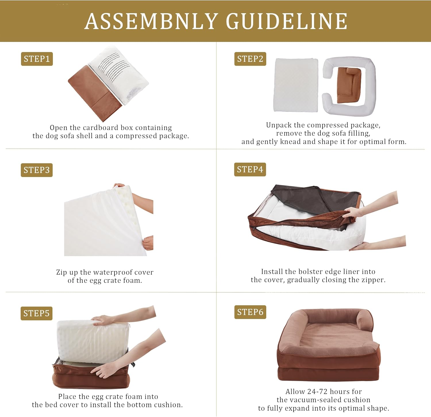 Bedfolks Orthopedic Dog Bed XL, Waterproof Dog Sofa Bed for Extra Large Dogs, Egg Foam Pet Couch Bed with Removable Washable Cover and Nonslip Bottom, Brown