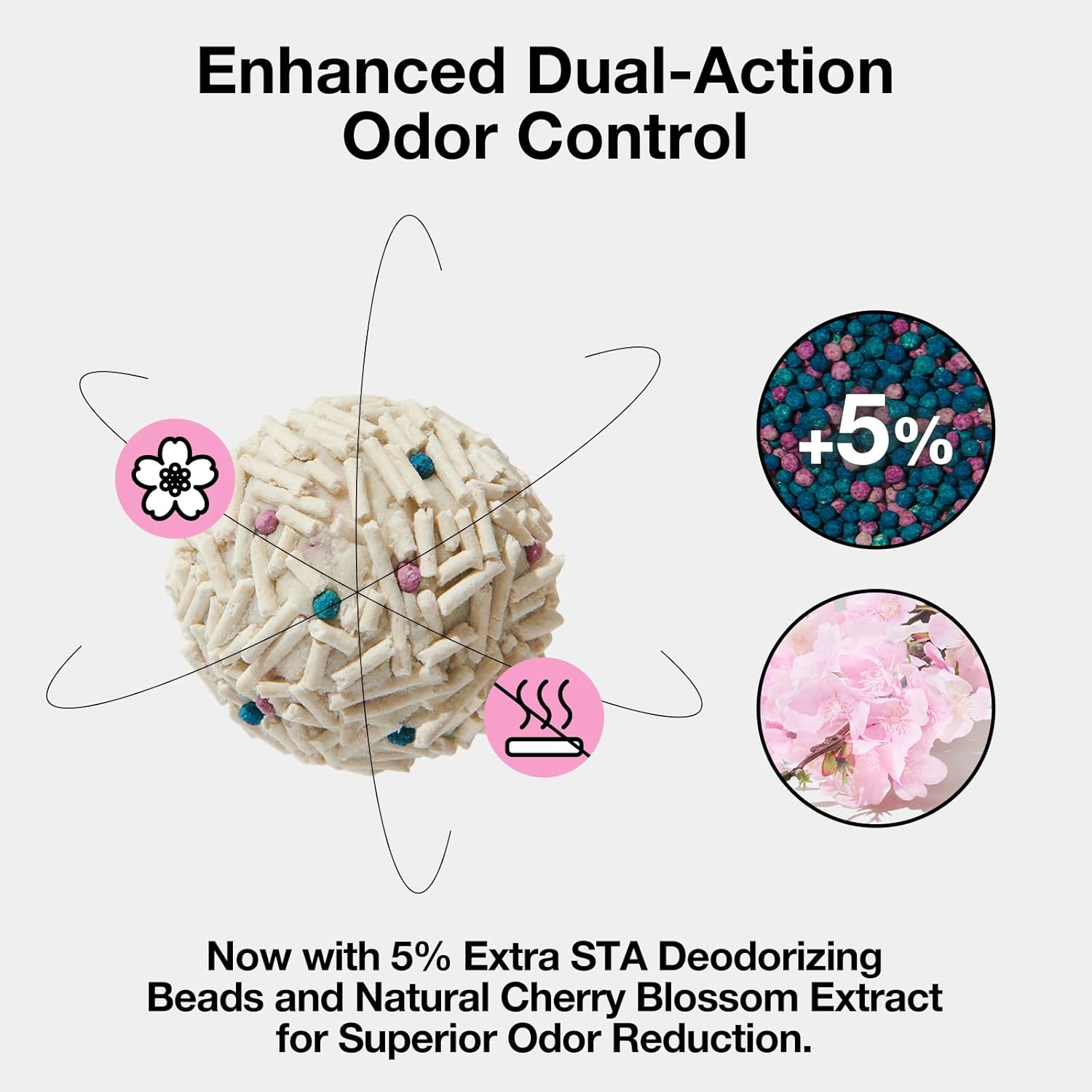 - 【Superior Odor Control】This tofu litter is infused with natural cherry blossom plant extract, which can help mask unpleasant odors. Plus, extra added 5% deodorizing beads that effectively control odors, ensuring a fresh and odor-free space