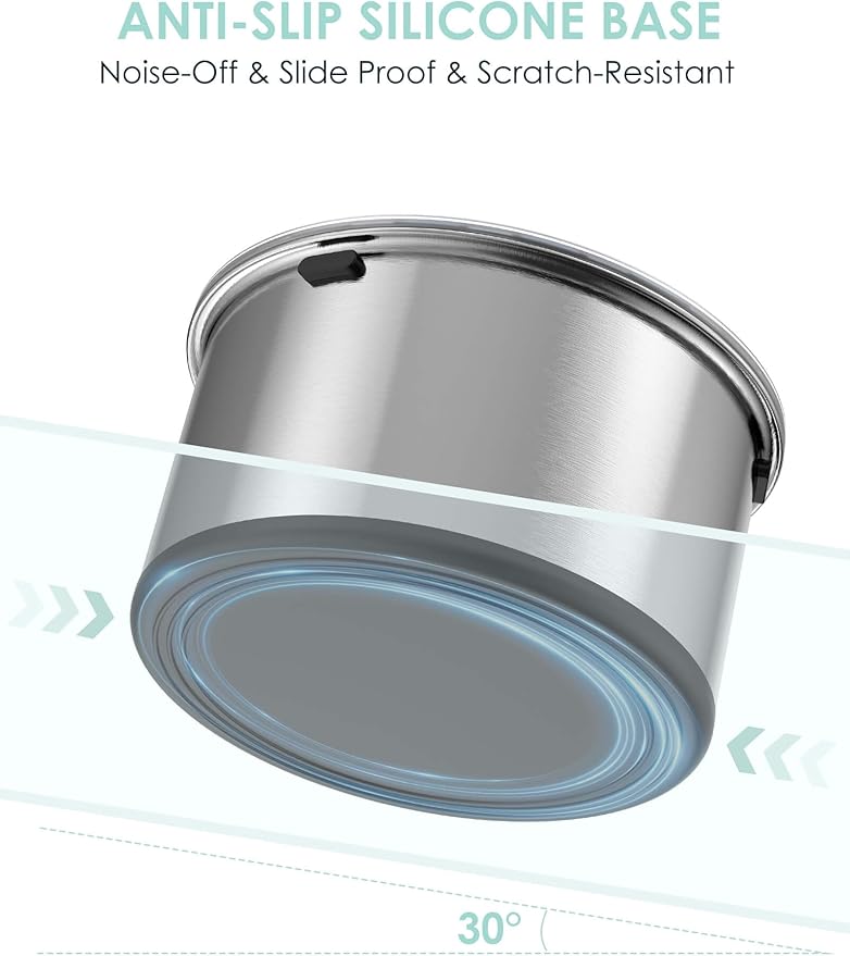 - 【High Quality Material】Heouvo dog water bowl made of thick, heavy duty 304 stainless steel, sturdy & anti-rust. Bowl bottom is full covered by silicone, provide super anti-slip effect, eliminate noise and no floor scratching. and ensuring that it stays in place and never tips over.