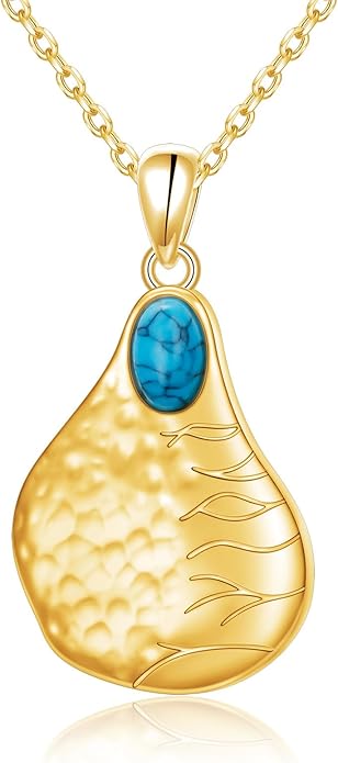- 🐚Material🐚: Turquoise shell pendant is made of high quality 925 sterling silver plated in 18k gold and embellished with a unique texture of turquoise, hypoallergenic and will not cause any burden on our skin. The shape of the shell necklace also uses hammered fine workmanship to make it look more vivid and unique.