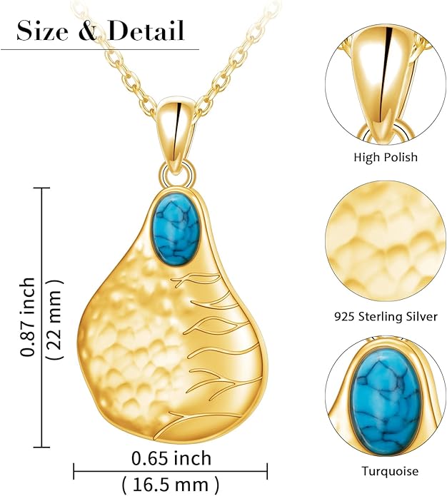 - 🐚About Size🐚: Turquoise and gold jewelry height -0.86", width -0.65". Comes with 18" in length with a 2" extension chain to comfortably fit most people. This turquoise western jewelry is a great addition to any wardrobe and is suitable for any occasion!