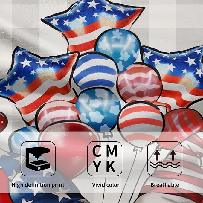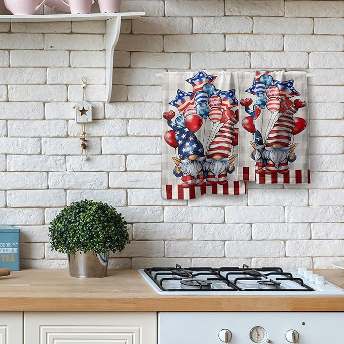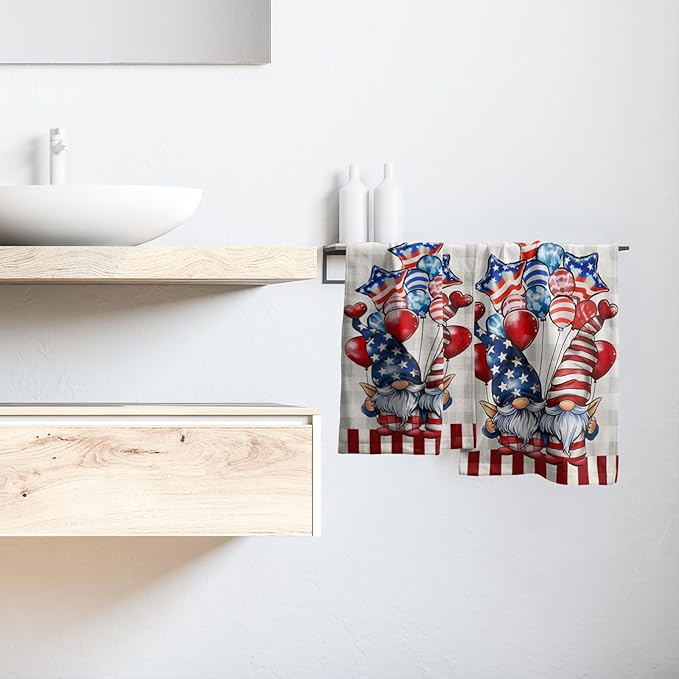 Patriotic Gnomes Hand Towels Set of 2 American Flag Kitchen Dish Towel Star Balloon Soft Microfiber Face Towel for Bathroom Home Decor